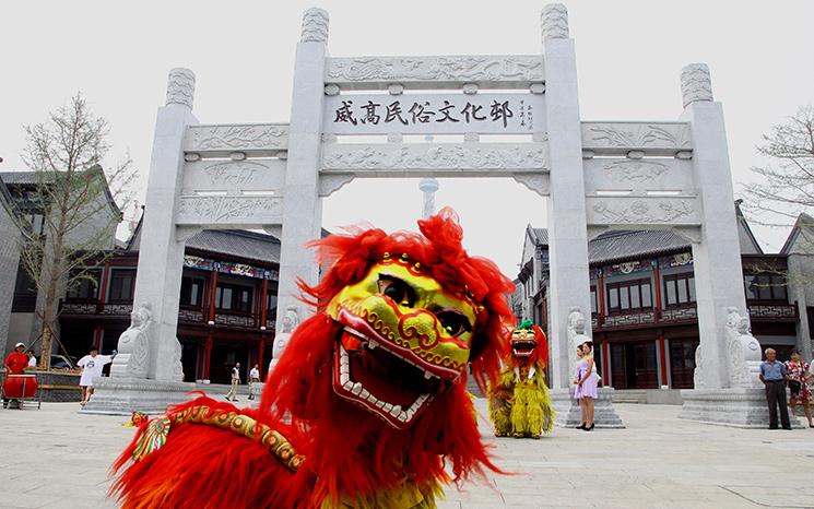 “威高民俗文化邨的建设采用了清朝时期的胶东建筑风格,硬山屋顶,青砖灰瓦,贯穿古戏台广场、水街、休闲庭院、过街廊等,整体形成为一个空间形态丰富、地域特色鲜明、集景观、文化、旅游、休闲于一体的古镇街区。”张建华说,这样一个“承载中国文化精辟,合璧半山园林”的环境,是经营文化产业的最好去处。