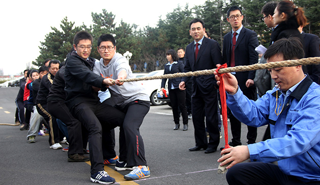 热烈祝贺威高房地产集团首届拔河比赛圆满结束,经过激烈的PK,物业公司一队力拔头筹,商管、万通一队勇夺亚军,建设公司一队获得季军。本次比赛得到了各子公司的积极响应和热情参与,赛前各队伍信心满满,整装待发,比赛过程中,各队队员齐心协力,荣辱与共。今天的比赛天气虽然寒冷,但各队队员都克服困难,奋勇争先,发扬团队作风,展现了威高地产人的团结协作,永争第一的精神。