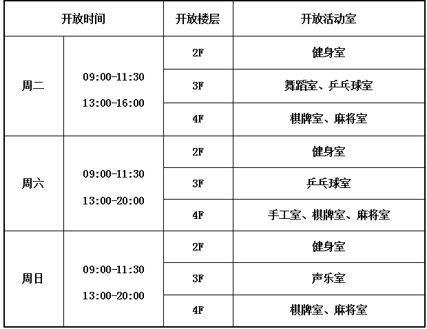 为了满足威高花园社区业主文化、健康活动的需求,创建和谐社区邻里,定于2月1日开放威高天伦苑老年公寓部分活动室。 威高花园活动室开放日程表: