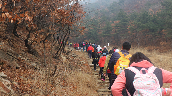 早晨下着微微小雨,温度较低,但是天气并没有影响植树的参与者们,大家按照约定的时间准时到达威高时光城集合出发,前往里口山。作为活动的环节之一,攀登里口山也勾起了大家浓厚的兴趣。从凉水湾入口上山,一路上边哼着歌边欣赏着沿途的美景,不亦乐乎。靠近山顶的时候,看着地上横着的由于大火而烧得发黑的树,大家惋惜不已,却也更能激起植树的热情。