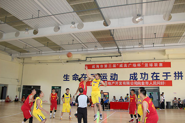 由威海市体育总会主办,市篮球协会承办,威海威高房地产集团冠名赞助的2017年度“威高广场杯”篮球联赛,6月11日在威海市体育运动学校圆满落幕。该联赛5月31日鸣哨开赛,历时12天,共计16支代表队200多名运动员参加,经过48场紧张激烈的角逐,最终冠军、亚军、季军分别由金碧建筑俱乐部、文登赛踏鞋业俱乐部、奥维俱乐部摘得;第四、五、六名由贝佳思俱乐部、恒泰毛毯有限公司俱乐部、金海湾俱乐部获得,同时,大会组委会和裁判委员会投票选举产生了恒泰毛毯俱乐部、清风战队俱乐部两项“优秀组织奖”和“体育道德风尚奖”。