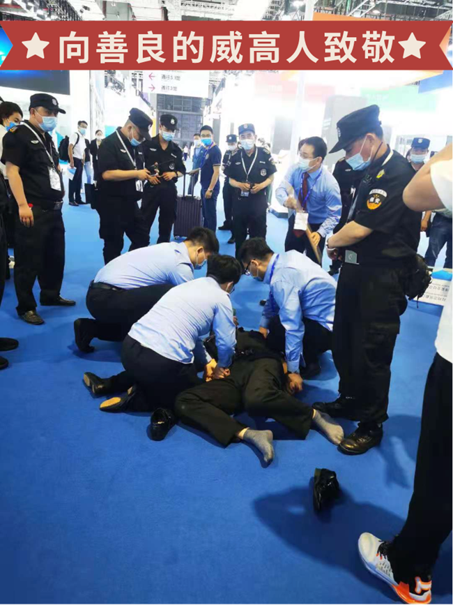 2021年5月16日,上午九点十五分,在展会现场上,一名安保人员突然倒地意识不清,浑身抽搐,情况紧急!