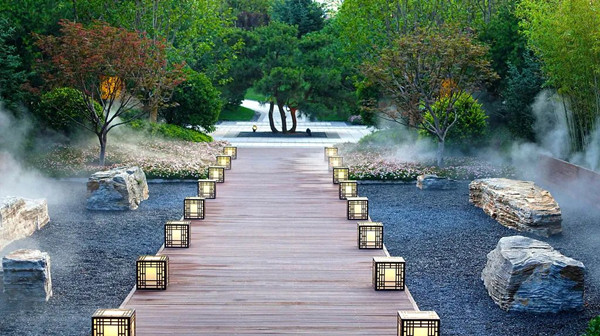 营造山谷的氛围感,同时寄托风调雨顺阶阶高的美好寓意