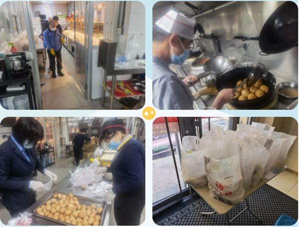 为了满足园区业主的就餐需求,威高花园业主食堂提供熙和苑外卖送餐服务,从早上4:30到晚上7:30,包子、莲子、黑米饼等家常饭菜在师傅们的忙碌下香气四溢,所有业主的外卖订单都在有序制作、配送,只为让居家隔离的业主能够吃上热乎的饭菜,体会到“家”的温暖。