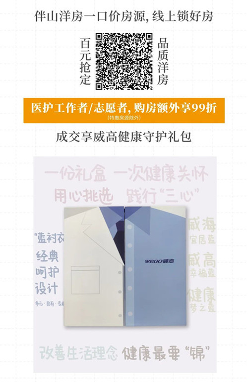 威高锦绣四海,约99/117㎡伴山洋房,设备平台&南向双跨阳台,高附加空间,阔绰尺度,轻松容纳三代同堂,让居住功能瞬间扩张,南向三开间,每个人都有自己的空间,团聚时刻亦不拥挤,心旷神怡间,让闲适生活满溢绿意与阳光温暖。