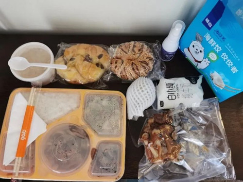 高强度的工作意味着高体能消耗,几天下来很多人体力不支,但是没人叫苦叫累,他们知道,报名的那一刻,就肩负起了责任,每天早晨在防护服上写下“威高”二字的时刻,就意味着他们是威高精神的践行者和传播者,坚持是打赢抗疫战的前提。为了给他们赋能,威高建工领导层心系战斗在一线的他们,调配了水果、牛奶、日用品、防疫用品和威高食品公司的面包、卤味等物资,鼓励大家听从管委统一安排,高效配合一线防护人员做好工作,坚决打赢攻坚战。