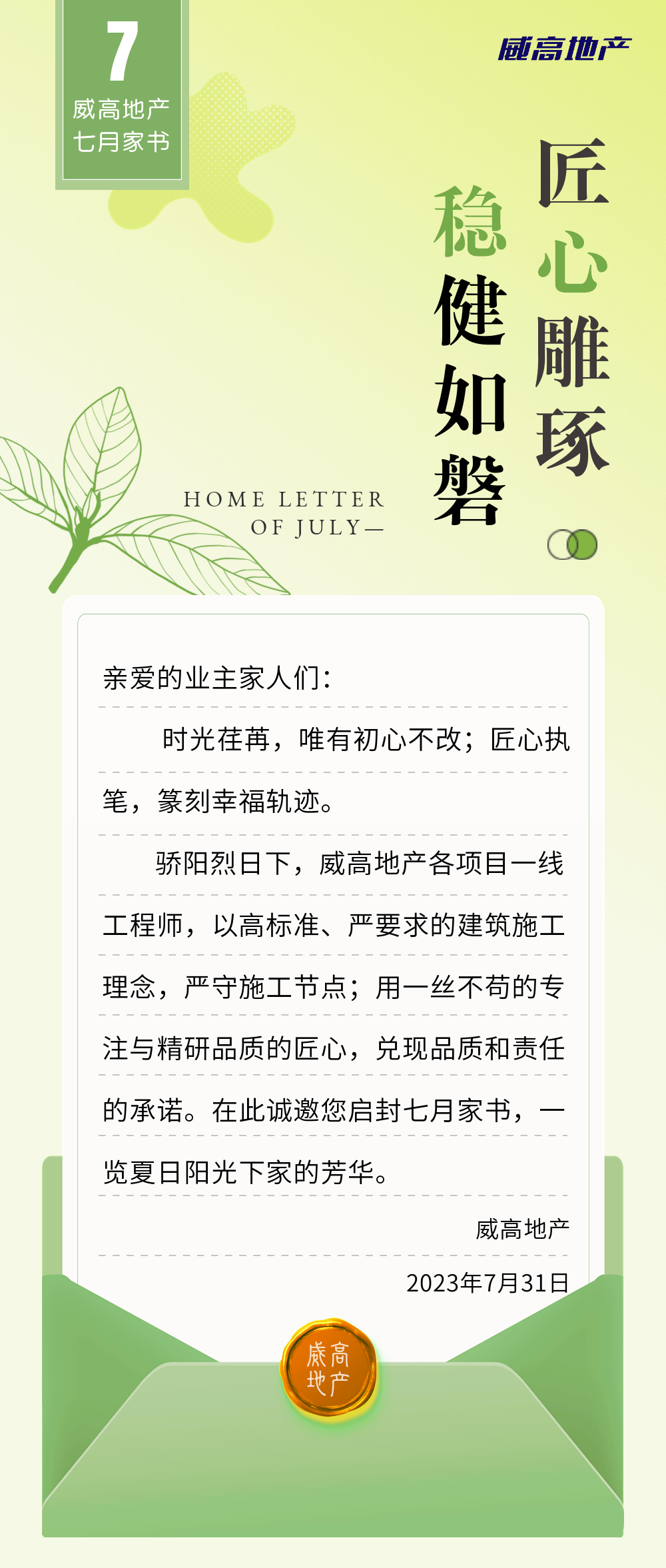 威高地产7月家书 | 匠心雕琢,稳健如磐
