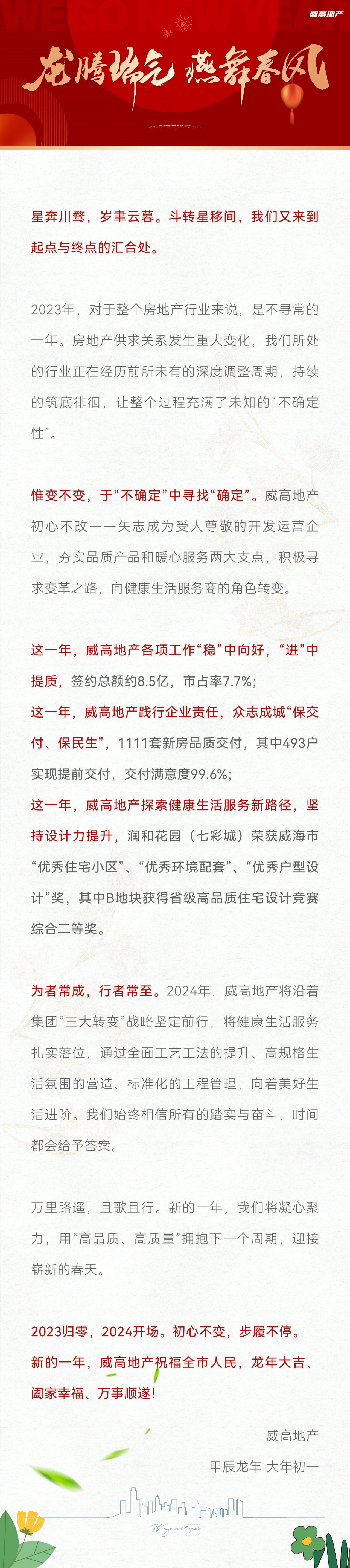威高地产2024新年致词丨龙腾瑞气 燕舞春风